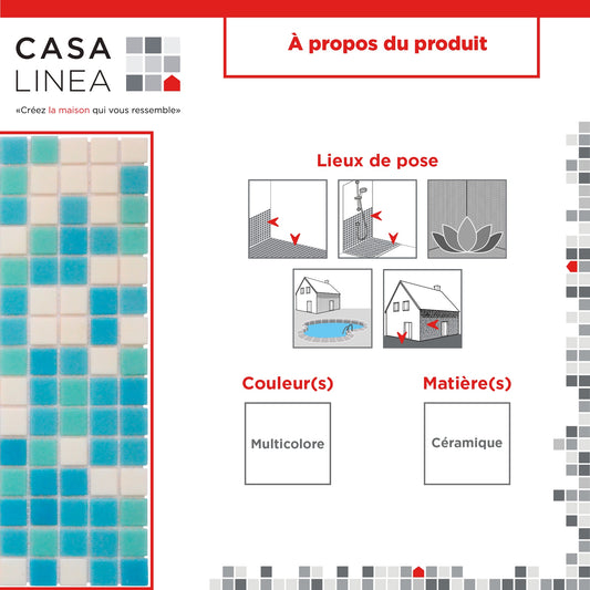 Choisir la mosaïque piscine en pâte de verre ou en céramique, c’est opter pour un revêtement durable, esthétique et facile à intégrer dans tous les styles d’aménagement. Ses couleurs éclatantes conservent leur intensité au fil du temps et sa modularité permet de laisser libre cours à votre créativité. Avec Casa Linea, transformez votre piscine en un lieu unique où se conjuguent confort, raffinement et plaisir visuel.